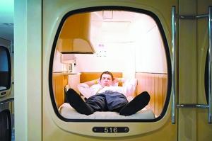 膠囊旅館的面積通常不會(huì)超過(guò)2平方米,高度僅有1.25米,人在里面無(wú)法站立,只能爬著進(jìn)去。一床、一桌、一臺(tái)電視,基本就是膠囊旅館的全部家具了。墻壁上有一排電子開(kāi)關(guān),用于控制燈光、溫度和音響設(shè)備。