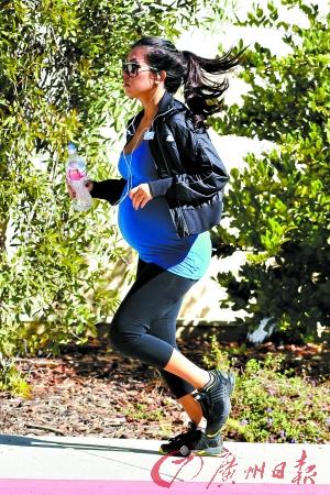 大腹便便的考特尼·卡黛珊也加入跑步大軍,帶著MP3獨自慢跑,運動起來不輸旁人。