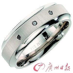 男版訂婚戒指普遍都戒面較寬,鑲在上面的鉆石多為方形或長方形,還有商家采用了黑鉆來鑲嵌。