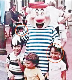 唐娜的這張童年照是在佛羅里達(dá)州迪斯尼樂(lè)園旅游時(shí)拍攝的,唐娜和兩個(gè)弟弟站在照片的前方,他們當(dāng)時(shí)正在和迪斯尼動(dòng)畫片《小飛俠》中的一個(gè)卡通人物造型“史米先生”合影。當(dāng)時(shí),亞歷克斯的父親也正好帶著年幼的他到迪斯尼樂(lè)園游玩,他們當(dāng)時(shí)位于唐娜身后不遠(yuǎn)處,正好也被拍進(jìn)了這張照片中。