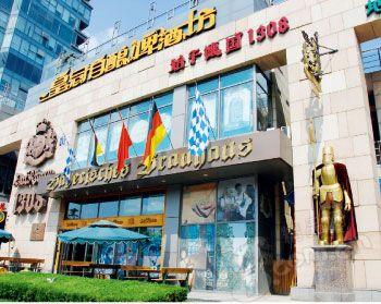 記者來到位于工人體育場東門馬路對面的DK1308皇冠自釀啤酒坊,這里以德式騎士裝潢為主,門口豎立的騎士鎧甲讓酒吧分外醒目。工人體育場見證了多年中國足球的經典賽事,這里的足球文化氛圍十分濃重,毗鄰三里屯酒吧區的DK1308擁有更加適合觀看足球比賽的文化底蘊。市場部解經理告訴記者,這里是北京不多的體驗傳統巴伐利亞自釀啤酒文化的就餐吧。酒吧中庭挑高14米,氣勢恢宏,碩大的啤酒釀造機(德國頂級品牌釀酒設備Cspary卡斯巴瑞)豎立在中庭,懸掛的比賽賽程清晰可見,便于人們觀看球賽。酒吧內懸掛了參加本次世界杯的32國國旗,一進門就能讓客人體會到世界杯的氣氛。樓上三層的超大投影屏幕能夠為球迷看球提供更大的便利。