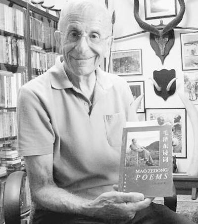 武大衛展示他的藏書之一《毛澤東詩詞》,他非常喜愛這本書,在其中夾了不少筆記。本報記者 韓曉明攝