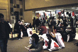 就讀紐約州立大學的劉同學和十多個友人從感恩節中午就抵達購物中心停車場,帶著椅子、毯子,還有撲克牌、iPod等各種消遣物品。他們看中的是戴爾手提電腦,當天的BEST BUY價格要比平時便宜400多元,他們每人都打算買一臺。