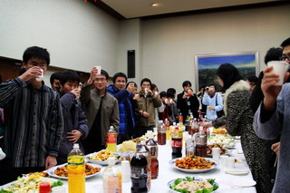 學(xué)友們輕松而愉快的討論,親切而溫馨的交流使會(huì)場(chǎng)充滿了熱情洋溢的氣氛。聯(lián)歡會(huì)的氣氛熱烈而喜慶,來自新疆的買買提學(xué)友還興致盎然地跳起了新疆家鄉(xiāng)的舞蹈。初到北海道的新生們?cè)跉g聲笑語中度過了一個(gè)美好難忘的夜晚,也結(jié)交到更多的朋友。(仇棣)