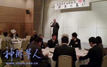 會議當天下午2:00新年懇請會開始,札幌日中友好協會會長清岡幸治向來賓致以新年問候并感謝日中友好團體對促進中日友好做出的大量工作。他回顧說,2009年是豐收的一年。特別是中日友好團體成功舉辦了慶祝新中國成立60周年的大型活動。中國留學生也積極參與,引起了社會各界的好評。這次新年懇請會是留學生代表參加人數最多的一次,說明了留學生對日中友好關系發展的重視和熱情。對此他們很高興,也很感謝。