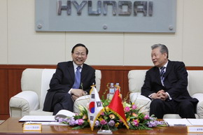 中新網4月13日電 據外交部網站消息,2010年4月9日,應現代起亞自動車集團邀請,張鑫森大使率領由中國駐韓國大使館館員、在韓留學生等200余人組成的“中韓友好產業考察團”訪問了位于忠清南道牙山市的現代汽車牙山工廠。韓國國務總理室吳鈞局長、知識經濟部、教育科技部、外交通商部等部門官員出席了有關活動。