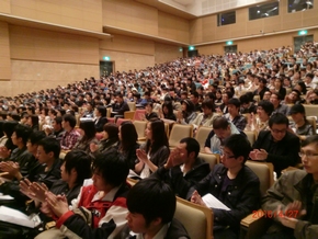 許澤友參贊兼總領(lǐng)事在說明會上致辭,熱烈歡迎同學(xué)們來日本求學(xué),希望同學(xué)們樹立遠大志向,刻苦學(xué)習(xí),作好克服學(xué)習(xí)和生活壓力的準(zhǔn)備,要求同學(xué)們遵紀(jì)守法、入鄉(xiāng)隨俗,積極主動地學(xué)習(xí)日本社會的優(yōu)點和長處,與身邊的日本民眾建立良好的交流渠道和感情紐帶,不但要報效國家與人民,而且還要以各種方式推進中日友好。