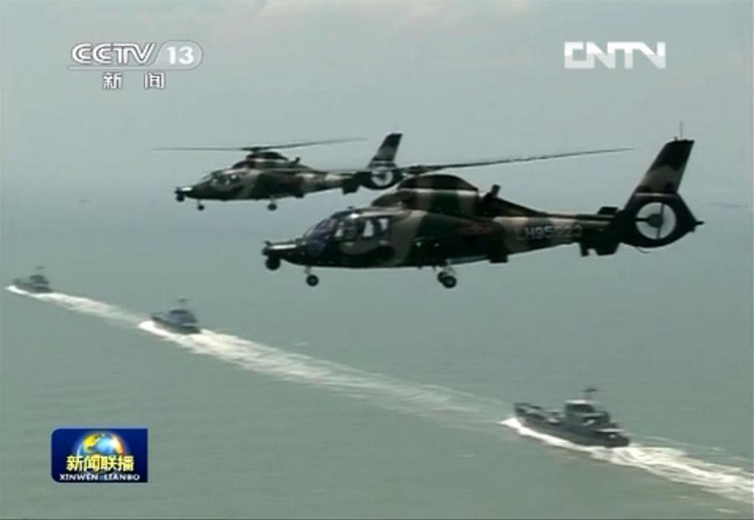 武裝直升機編隊為水面部隊登陸提供空中火力支援