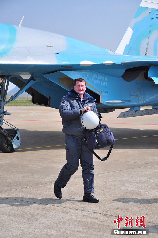 剛從蘇27戰機下來的飛行員穿得很厚。陳海峰 攝