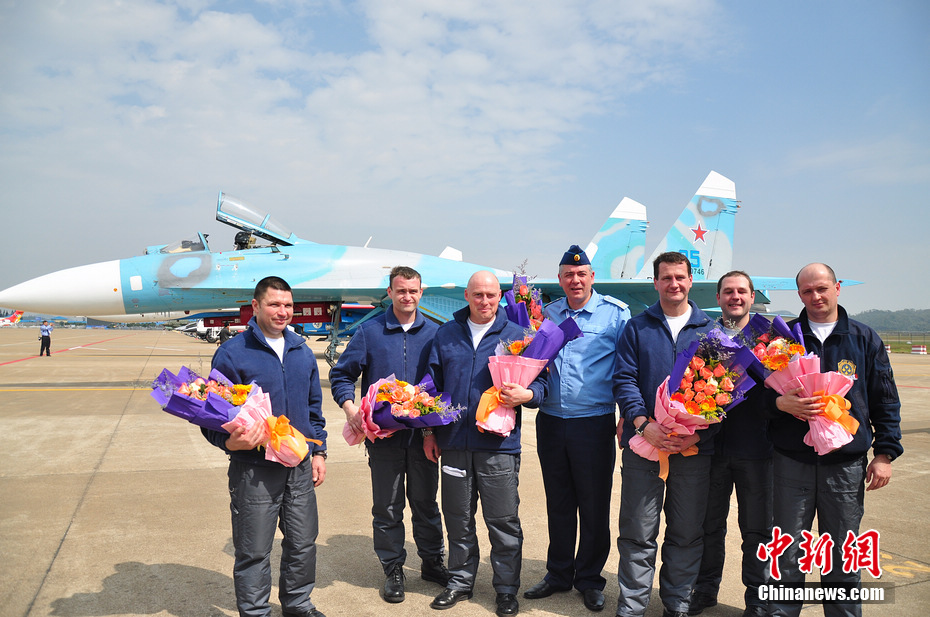 俄羅斯勇士飛行表演隊飛行員合影。陳海峰 攝