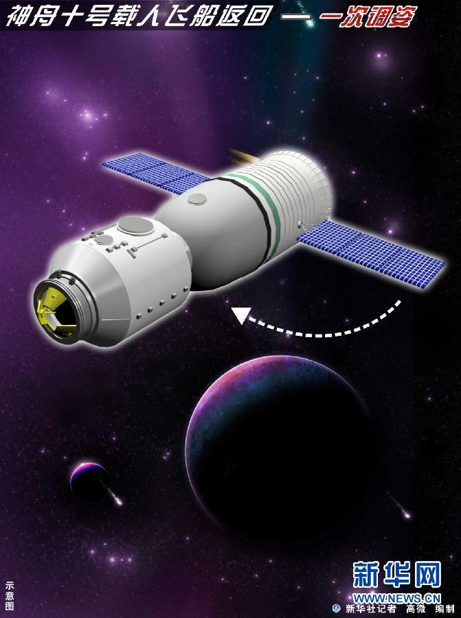 神舟十號載人飛船返回——調(diào)姿 新華社記者 高微 編制