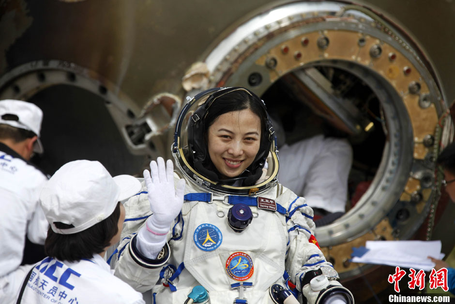 6月26日上午,內(nèi)蒙古中部草原“神十”任務(wù)主著陸場,“神十”載人飛船返回艙順利著陸,中國首位“太空老師”、“神十”任務(wù)女航天員王亞平健康出艙。孫自法 攝