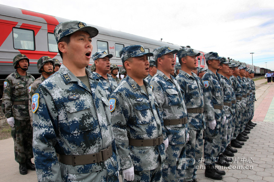 官兵意氣風(fēng)發(fā)、斗志昂揚(yáng)準(zhǔn)備登上俄方專列。 曹占禮 攝