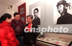 為紀(jì)念毛澤東誕辰109周年,收藏家奚景鵬先生《毛澤東著作早期版本收藏展》一月正在北京展出。674冊(cè)毛澤東著作早期版本,都是建國(guó)前出版的毛澤東選集、文集、著作單行本專著著作匯編本、等,圖為收藏家奚景鵬先生(右一)正在為參觀者講解他收藏的毛澤東著作各類版本。作者:張勤
