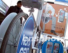 北京春節前夕的手機市場更加火爆,一家手機公司別出心裁的利用自行車在街頭做起了廣告。作者:杜洋