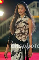 身著著名設(shè)計(jì)師房瑩新款時(shí)裝的模特,新春佳節(jié)在海南三亞亞龍灣上演時(shí)裝秀。作者:毛建軍
