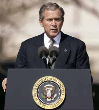左胸佩帶銀色航天飛機小徽標的布什在講話中用主要的篇幅一個個追述了7名宇航員的事跡,并表示美國的航天計劃會繼續下去。布什還稱贊了宇航員們為了科學探索事業而甘愿承擔風險的精神。他說,宇航員們使命幾近完成,但“我們卻在離家如此近的地方失去了他們”。