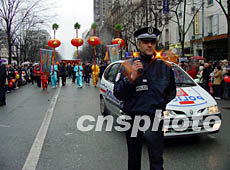 法國(guó)六十多個(gè)華人社團(tuán)歡天喜地慶新春,聯(lián)合組織的彩妝巡游在巴黎十三區(qū)舉行。法國(guó)警方為華人新春彩妝巡游開(kāi)道。作者:蔚中