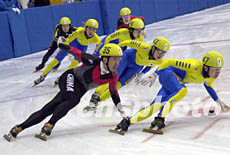 在6日舉行的第五屆亞冬會男子一千五百米速度滑冰比賽中,中國選手李佳軍獲得銀牌。圖為李佳軍在決賽中試圖突破四名韓國隊員的包圍。作者:陶光雄