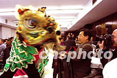 春節(jié)期間,美國(guó)芝加哥華人華僑相聚一堂,他們用傳統(tǒng)舞獅祝愿世界和平。作者:王瑤