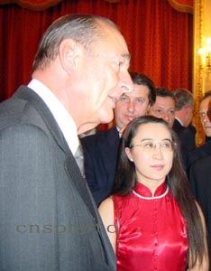 下午五點四十五分左右,希拉克興致勃勃來到招待會大廳,并對見到老熟人、中國駐法大使吳建民感到十分高興。他說,今年是中國羊年,羊年是一個吉利的年份。他向法國的華僑華人致以節日的祝賀。