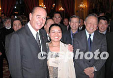 圖為希拉克和中國駐法大使吳建民、法蘭西語言研究院華人院士程抱一在一起。作者:馮越強