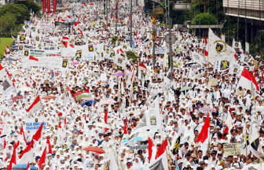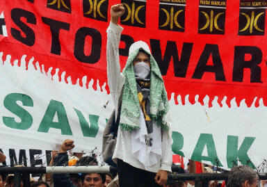 9日在印尼雅加達爆發大規模反美反戰示威,超過5000名穆斯林走上街頭,在美國大使館外抗議美國準備對伊拉克使用武力。