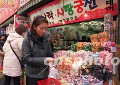 情人節(jié)將至,氣候寒冷的韓國首都漢城市刮起“情人節(jié)熱浪”,許多專門銷售情人節(jié)糖果的專賣店吸引了不少選購情人節(jié)禮物的女青年。作者:任晨鳴