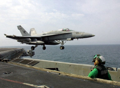 F/A-18“超級黃蜂”(SuperHornet)艦載多用途超音速戰斗機,由美國麥克唐納·道格拉斯公司制造,1995年首次飛機,裝備于“林肯”(USS Abraham Lincoln)號核動力航空母艦。