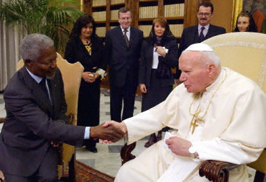 抵達羅馬參加聯合國發展署有關會議的聯合國秘書長安南與羅馬天主教皇約翰保羅二世舉行了長達30分鐘的會談。