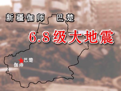 據(jù)中國地震臺網(wǎng)測定,北京時間今天十時零三分,在新疆伽師縣城東約四十公里處(北緯三十九點五度,東經(jīng)七十七點二度)發(fā)生六點八級地震。