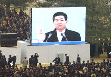 據美聯社消息,56歲的盧武鉉在漢城國會外的廣場宣誓就職。應邀觀禮的200多名外國政要包括中國副總理錢其琛、日本首相小泉純一郎和美國國務卿鮑威爾。