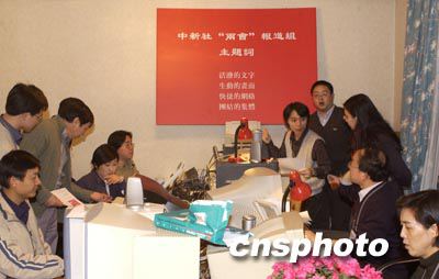 在友誼賓館寬敞的工作間內,中新社兩會報道組文字發稿、圖片發稿、網絡發稿,現場同時進行。記者四面出擊,分赴十幾家賓館飯店采訪,不斷發回來自現場的新聞和圖片。
