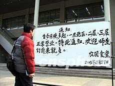 傍晚時分,昔日喧嘩熱鬧的北大農園餐廳再次迎來了眾多的客人。由于餐廳內部還有少量遭受破壞的地方沒有全部修繕完畢,所以,27日來就餐的有2000多人,而往常能達到3000人左右。