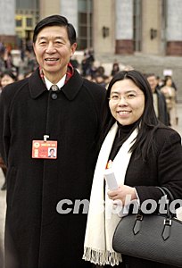 三月二日下午,全國政協十屆一次會議預備會議結束后,十屆全國政協最年輕的委員鄧亞萍與委員吳建民大使一起走出大會堂。作者:廖文靜