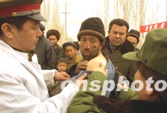 三月初,解放軍醫療隊晝夜在新疆地震災區巡回出診,確保災民身體健康。作者:宋吉河