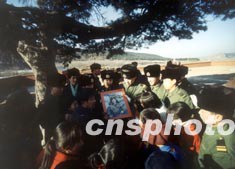 三月初,遼寧省撫順市解放軍官兵與當地的學生,來到雷鋒照片中的大松樹下,緬懷雷鋒。作者:陳剛