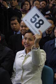 主持拍賣的上海國際商品拍賣有限公司介紹,自今年一月十四日發布拍賣冠名權消息以來,有五十余家海內外企業前來接洽,最后有九家中外合資企業和民營企業登記參與今天的競價,這些企業主要涉及高科技、交通、食品、制藥、服裝和房地產等行業。