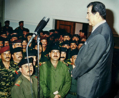 3月5日,伊拉克總統薩達姆在巴格達會見共和國衛隊官員。