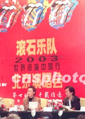 英國世界級搖滾巨星、40年經久不衰的“滾石樂隊”,將于2003年4月1日和4日在上海、北京舉行大型演唱會。中國搖滾音樂歌手崔健(右),六日在北京宣布將協同演出。作者:鄒憲
