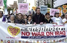 日本民間團體八日在東京市中心再次舉行大規模的反戰游行,反對美國準備對伊拉克發動戰爭。作者:陶光雄