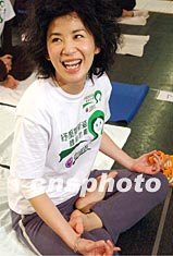 香港藝員吳君如,在三月八日香港舉行的“百人紓壓瑜伽日”活動上苦練瑜伽功。錢興強(qiáng) 攝