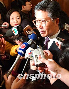 交通部部長張春賢三月十七日出席十屆全國人大一次會議時接受中外記者采訪。作者:張煒