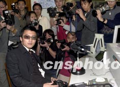 歌星謝霆鋒3月18日出席香港電臺(tái)節(jié)目"娛樂(lè)滿天星"訪問(wèn),吸引大批記者在直播室采訪拍照。鄧慶樂(lè) 攝