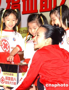 中新網(wǎng)3月19日電 香港藝人莫文蔚(Karen)昨日以“捐血愛心之星”身份出席捐血助人獻(xiàn)愛心活動(dòng),現(xiàn)場(chǎng)安排了一班小朋友載歌載舞,看得Karen大拍手掌。