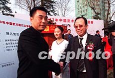 香港拼牌集團服飾公司二十五日在北京舉行2003年中國散打王爭霸賽冠名儀式,以進一步開發中國大陸服裝市場。圖為公司董事長柯夏鳴先生(左)與主辦單位代表揚富年先生在簽約儀式上。作者:武仲林