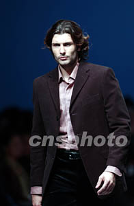 三月二十六日,“杉杉”秋冬男裝發(fā)布會(huì)在北京舉行,整體的服裝風(fēng)格以簡(jiǎn)約、舒適為主流。圖為模特展示一款時(shí)尚男裝。作者:盛佳鵬