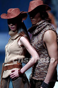 二十八日,“威鵬”2003/2004秋冬中國牛仔服裝流行趨勢發布會在北京舉行,模特展示的服裝充滿了經典與現代的融合,令牛仔服裝的面貌為之一新。作者:盛佳鵬