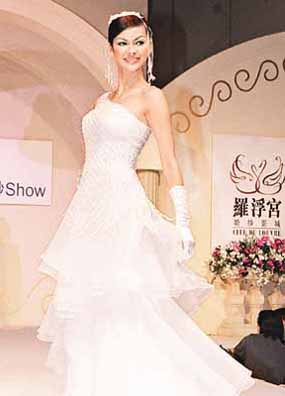 中新網(wǎng)3月31日電 “香港婚紗、婚宴暨蜜月旅游博覽2003”昨日舉行,周汶锜(Kathy)、姚嘉妮、歐陽(yáng)妙芝及Rosemary等,為不同單位展示艷麗的新款婚紗及晚裝。Kathy在活動(dòng)中更澄清與男友杜德偉的感情沒(méi)有出現(xiàn)問(wèn)題,并非在人前扮恩愛(ài)。
