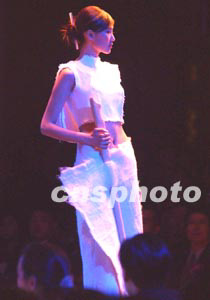 瑞典學生薩拉的時裝作品《冰將融化》,以山風花香的簡潔意境獲得三月北京國際青年時裝設計師大賽的最佳材料獎和銀獎。作者:賈國榮
